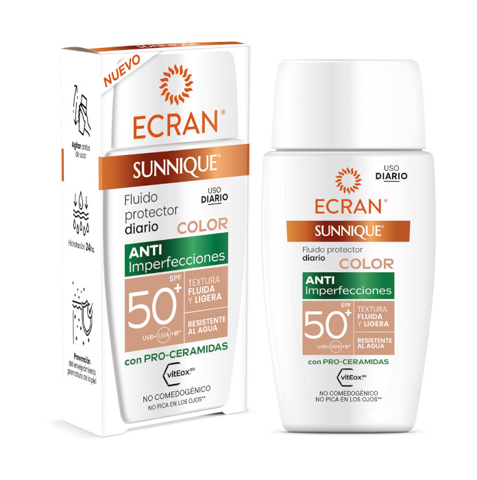 Nuevo fluido protector anti-imperfecciones color con Pro-Ceramidas. Unifica el tono de la piel y potencia su luminosidad. Corrige y difumina rojeces.